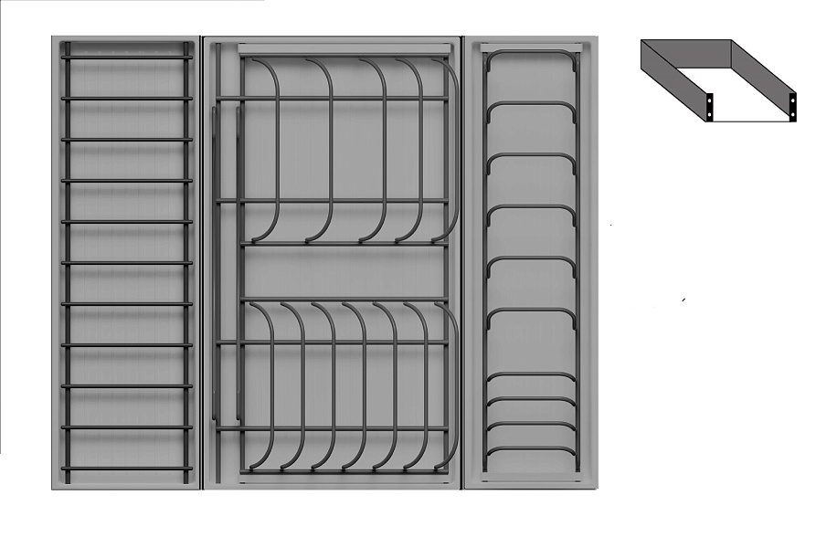 Модель — 1 большой модуль для посуды + 1 малый модуль для посуды + 1 малый модуль с решеткой
