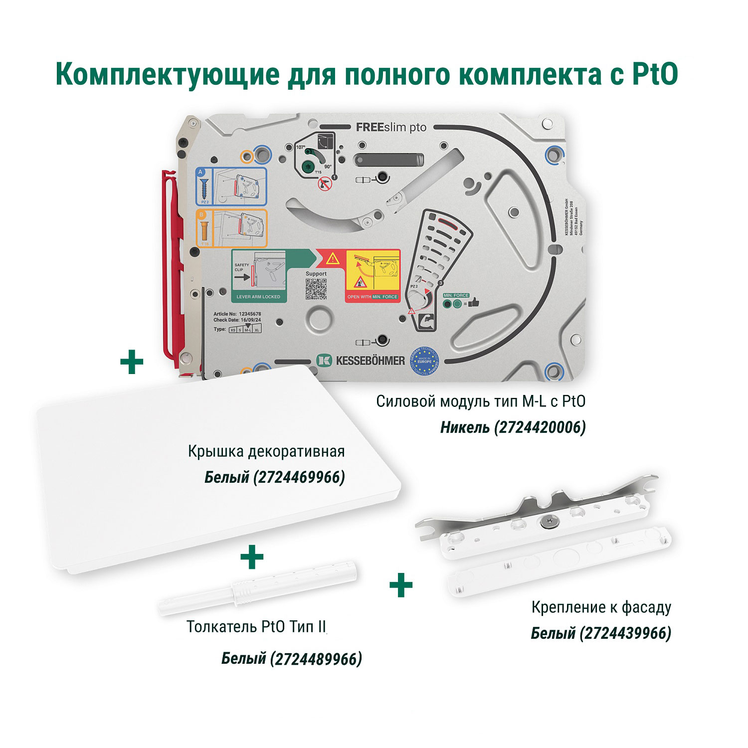 Силовой модуль тип M-L Pto левый и правый, к подъемнику ФриСлим Флап, H 225-650, 2 шт + 4 установочных штифта, 8 шурупов 4х20 мм, цвет НИКЕЛЬ (2724420006)