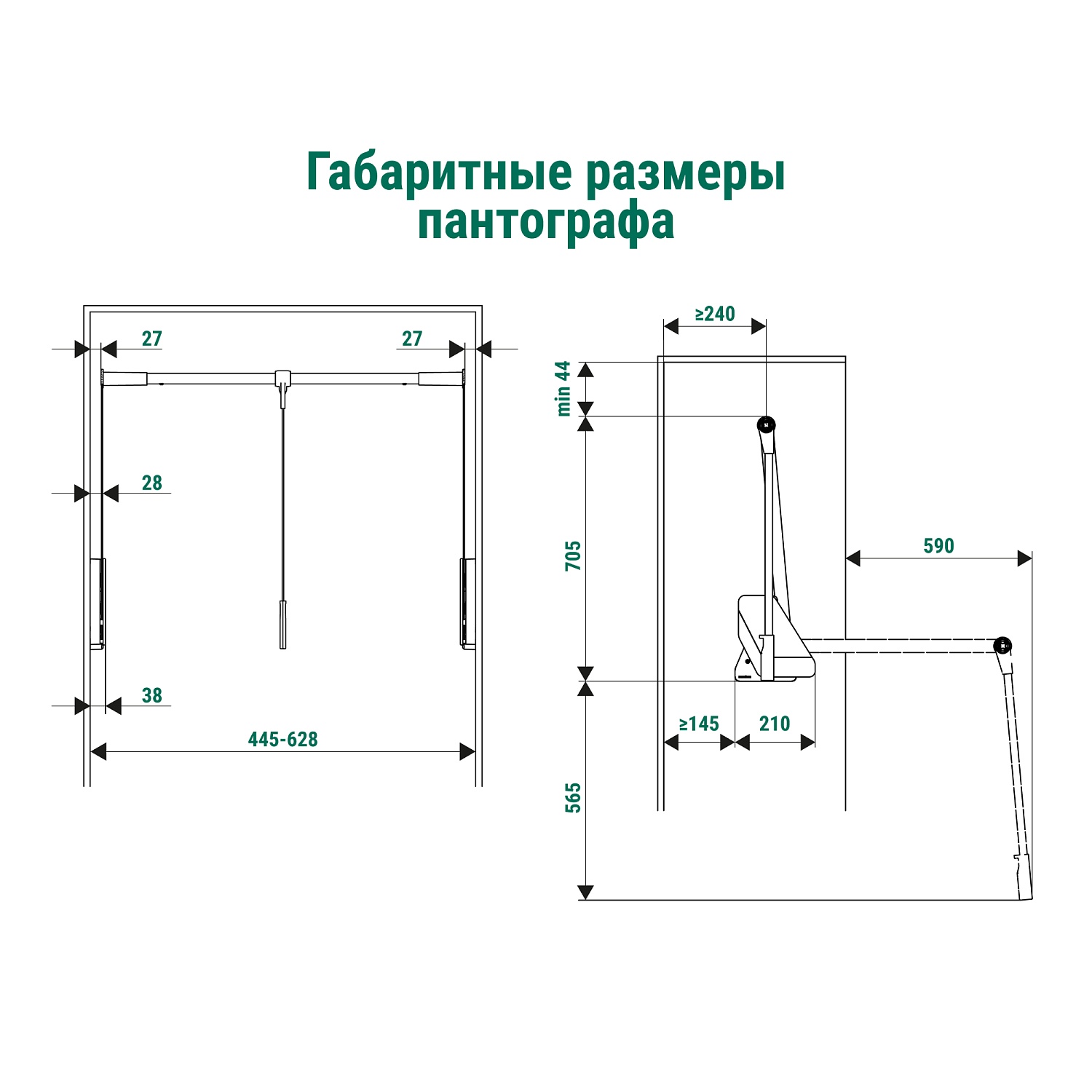 Conero Пантограф для гардеробной стандартный, Конеро W 445-628 мм, нагрузка 0,5-12 кг